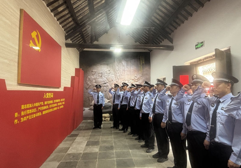 随后,党支部书记带领全体人员举起右拳,庄严宣读入党誓词:“我志愿加入中国共产党,拥护党的纲领,遵守党的章程,履行党员义务,执行党的决定,严守党的纪律,保守党的秘密,对党忠诚,积极工作,为共产主义奋斗终身,随时准备为党和人民牺牲一切,永不叛党。”激昂的誓言回荡在旧址上空,不仅是对革命先烈的告慰,更是党员民辅警们坚守信仰、践行初心的郑重承诺。